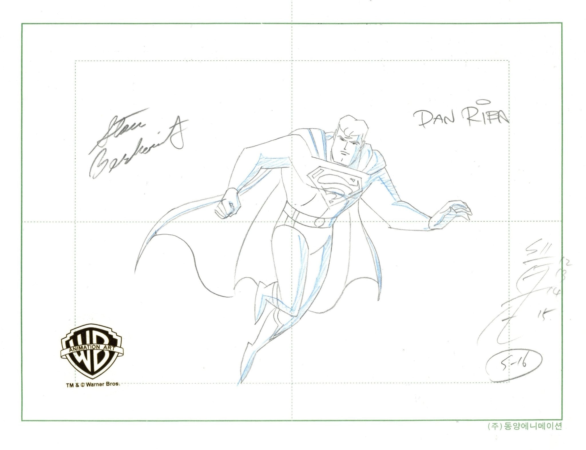 Superman The Animated Series Original Production Drawing Signed by Dan Riba and Stan Berkowitz: Superman