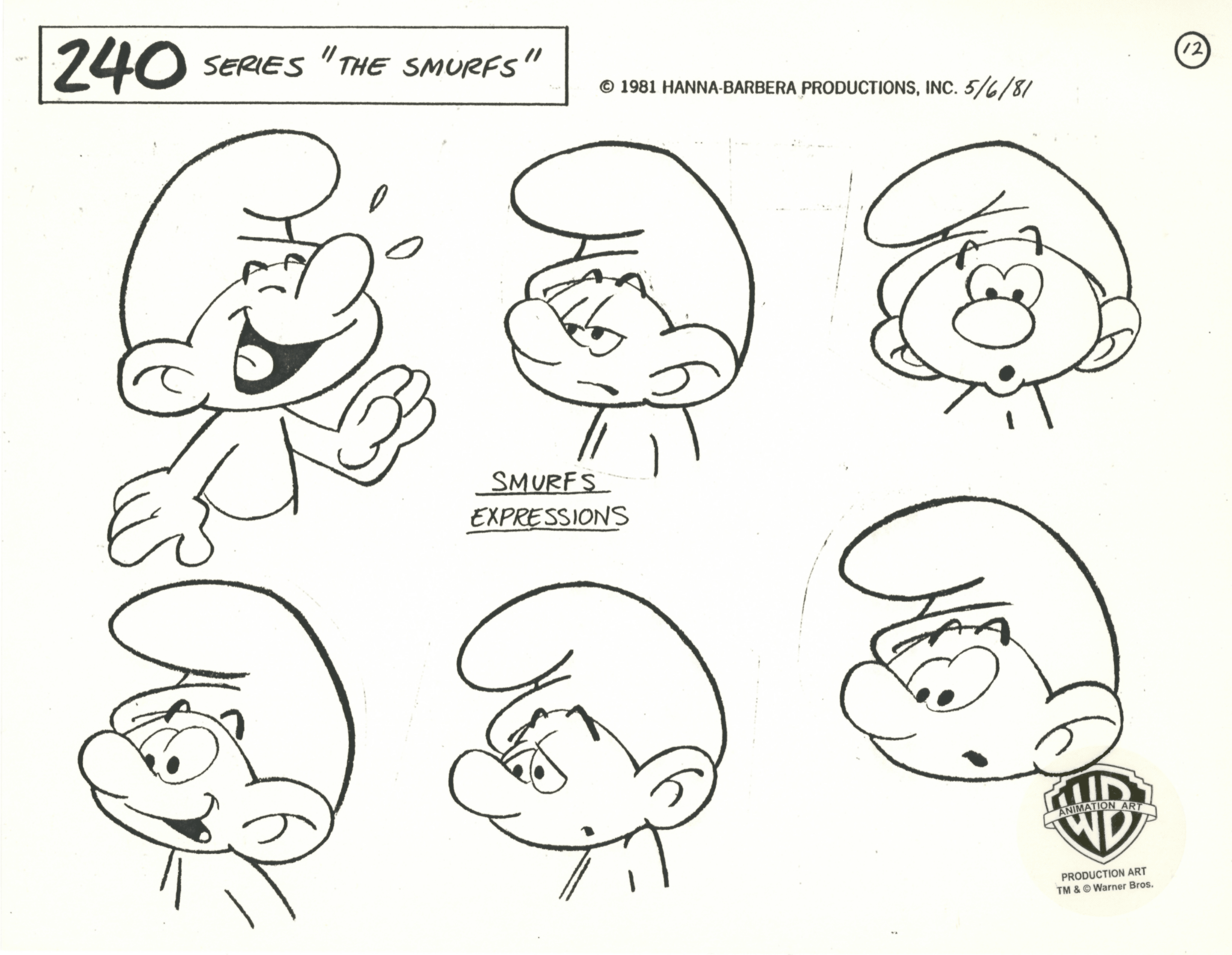 ABOUT THE MEDIUM: A model sheet is a group of character drawings illustrating different poses and expressions of a cartoon character. Because a number of artists worked on a single cartoon, these sheets were circulated to the animators to give a uniform look and feel to a character throughout a production.