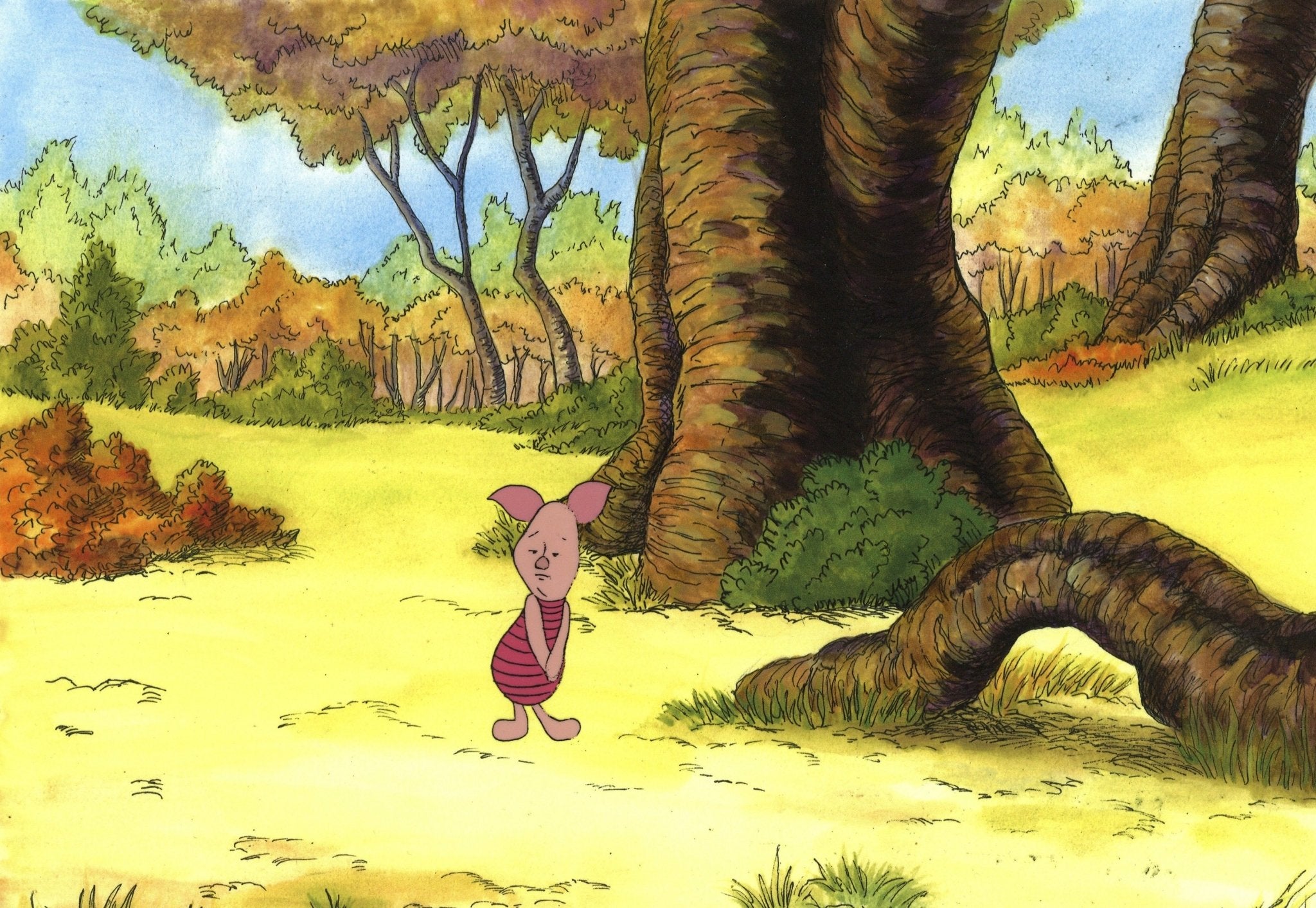 ABOUT THE MEDIUM: Original production cels are one-of-a-kind pieces of art that were used in the creation of an animated film or television show. Each has been hand-painted by studio artists on a piece of celluloid acetate, and has been photographed over a background painting to create a frame of the finished production.